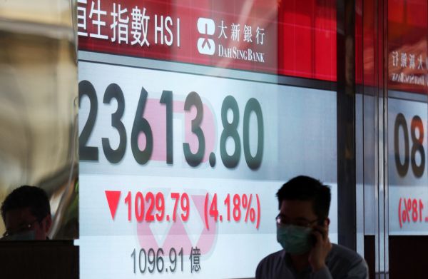 受困于疫情,香港股市在假期后的5月4日大幅下挫(李钢摄)